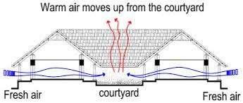SUN — STRONG WESTERN SUN; OPTIMAL TO ORIENT GALLERIES FOR NORTH LIGHT AND USE SHADING DEVICES. WIND — PREVAILING SOUTH-WEST MONSOON WINDS; SCOPE FOR NATURAL VENTILATION IN PUBLIC SPACES. CLIMATE — HOT-HUMID; DEMANDS PASSIVE COOLING, RAIN PROTECTION, AND HEAT REDUCTION STRATEGIES.