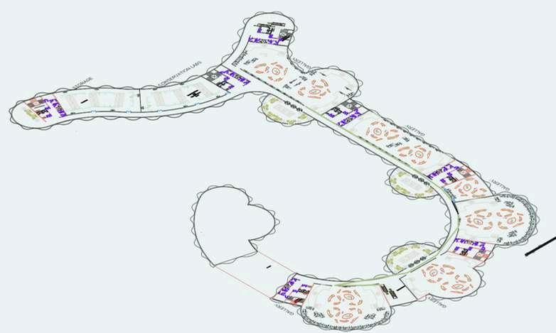 ORIENTATION: MAXIMIZE NORTH LIGHT FOR GALLERIES; BUFFER WEST HEAT; PLACE OAT ON LEEWARD SIDE