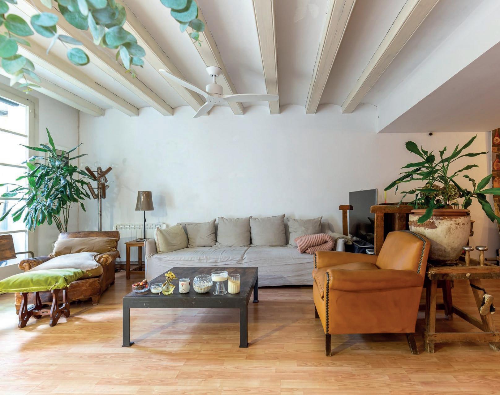 Pis amb sala d'estar-menjador diàfan de 55 m², terrassa encantadora i habitació de 28 m² amb vestidor. Espais lluminosos, sostres amb volta catalana i possibilitat d'una segona habitació o despatx.
