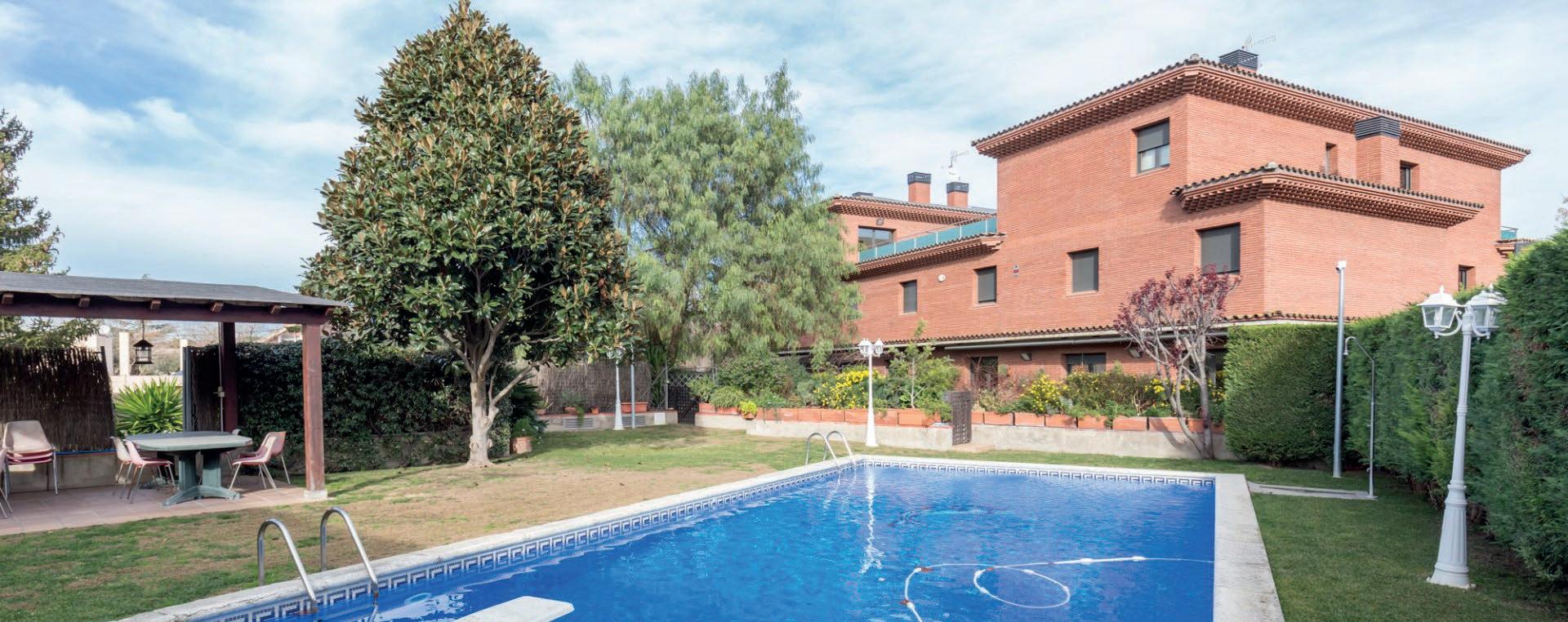 Casa de 4 plantes en un solar de 715 m², amb 5 habitacions i 5 banys a Sant Cugat del Vallès. La casa compta amb un sistema de persianes automàtiques, il·luminació automàtica al jardí, alarma i calefacció de gas natural. Els paviments són de marbre i parquet. A més, disposa d'un ascensor i piscina.