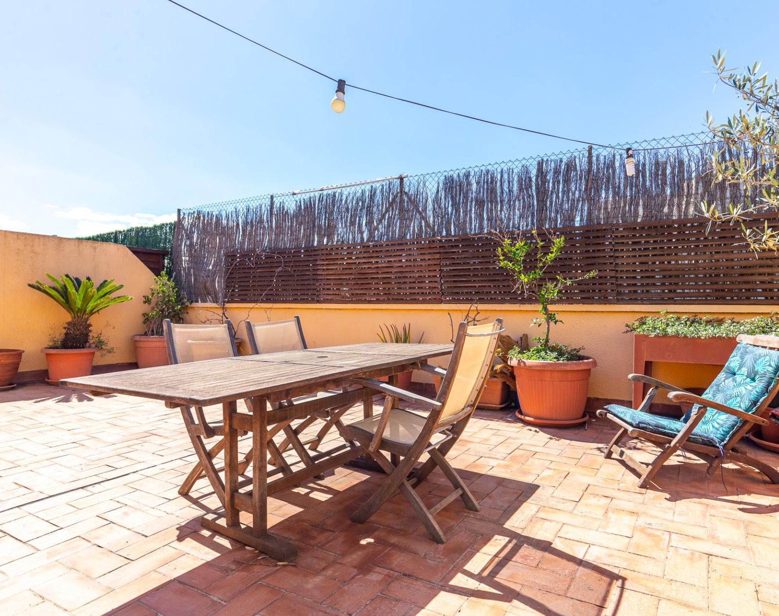 Pis exterior i lluminós al 5è pis amb porter, ascensor i garatge. Cuinaoffice amb safareig, sala d'estar-menjador de 29 m² amb i balcó de 9 m². Disposa de 4 dormitoris i 2 banys.Terrassa privada de 69 m².