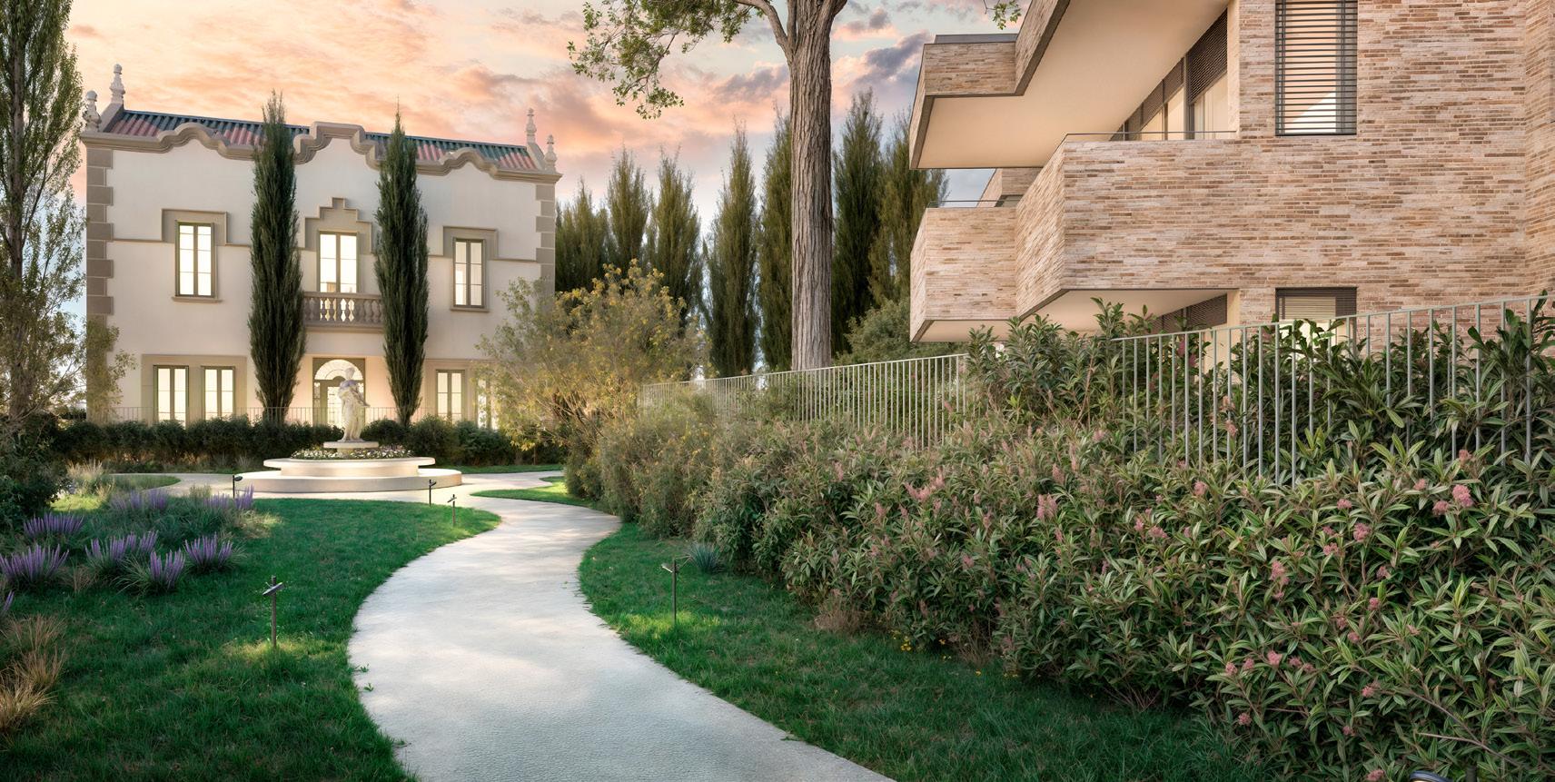 Nou projecte residencial a Sant Just Desvern amb 7 pisos d’alt standing. La Masia modernista rehabilitada ofereix 3 habitatges amb 4 dormitoris i jardí privat, més 4 pisos nous amb grans terrasses. Inclou jardí i piscina comunitària, i soterrani amb 16 aparcaments i trasters.