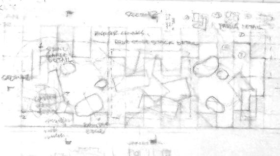 Utilize the impermanance and changing existence of materials to enhance the shifting and contrasting effects of “the outcrop”. Materials are meant to crumble and break. Vegetation and moss are encouraged to grow in between gaps and cracks.