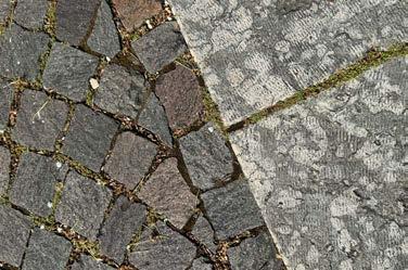 The same material of the existing paving will be used in smaller sizes to create the effect of transitioning and the pavings breaking apart.