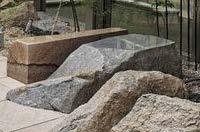 Blue stone basalt boulders in various sizes are used to represent the shifting materials and the anomalous “natural” outcrop.