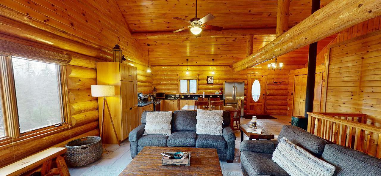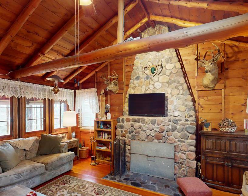 Well-loved, kit log cabin perched atop 83 acres, bordered by MN