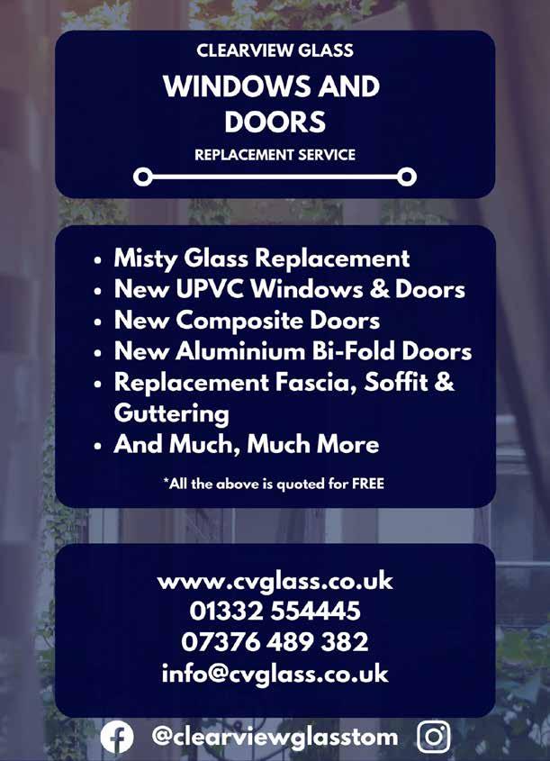 HOME IMPROVEMENTS 34 Don’t forget to mention Voice Magazines when responding to the Ads The Glazing Guys Specialists in replacing steamed up double glazing. Replacement windows, doors conservatories, gutters, UPVC roof edging, soffits & fascias. You don’t always need to replace the frames you can just replace the panes. NO JOB TOO SMALL Tel: 07780 586 288 The Glazing Guys CALL ADAM 07754 685545 Local Famil y Run Business Email: heatsafe@outlook com Domestic & Commercial Works Installation , Service, Breakdown s Boilers, Cookers & Fires Complete Bathroom s with Tiling Free Quotes & Friendly Advice @heatsafe1 HeatSafe Plumbing & Heating Services DON’T BE CURIOUS... ADVERTISE WITH CONTACT US TODAY TO LEARN MORE! T: 01773 549035 | E: info@voicemagazines.co.uk | www.voicemagazines.co.uk ADVERTISING • DESIGN • DISTRIBUTION