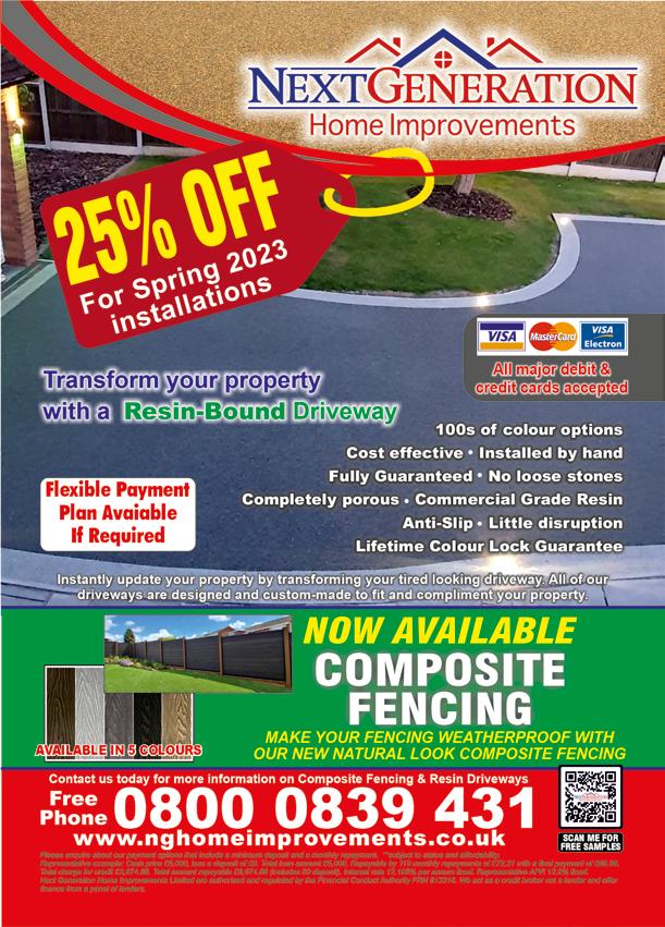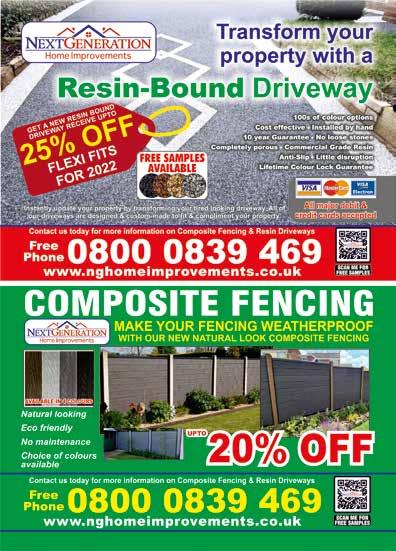 GARDENS 42 Don’t forget to mention Voice Magazines when responding to the Ads E L A Lawn for Winter WHY NOT SIT BACK, RELAX, LET ENVI LAWNS DO THE WORK! No more muddy paw/foot prints! Child and pet friendly Low maintenance No watering No more lawn mowing UV stabilised No weeding Ideal for shaded areas No more soggy garden Most lawns finished in 2 days over 15 years experience. Call the experts: 10 Year Guarantee PLEASE SEE OUR FACEBOOK PAGE FOR OUR 5* REVIEWS Before ALL40%UPTOoff GRASS PRICES Offer ends 31/01/23 voucherVOICE40code: From £895* for a fully fitted electric garage door. Garolla garage doors are expertly made to measure in our own UK factories, they’re strong and solidly built. The electric Garolla door rolls up vertically, taking up only 8 inches inside your garage, maximising valuable space. Our expert local installers will fit your new door and they’ll take away the old one too, so there’s no mess. Give us a call today and we’ll come and measure up FREE of charge. CALL US TODAY ON: 01773 650 031 MOBILE: 07537 149 128 *Offer valid for openings up to 2.4m wide & including 2 remote controls, 55mm white slats, internal manual override.