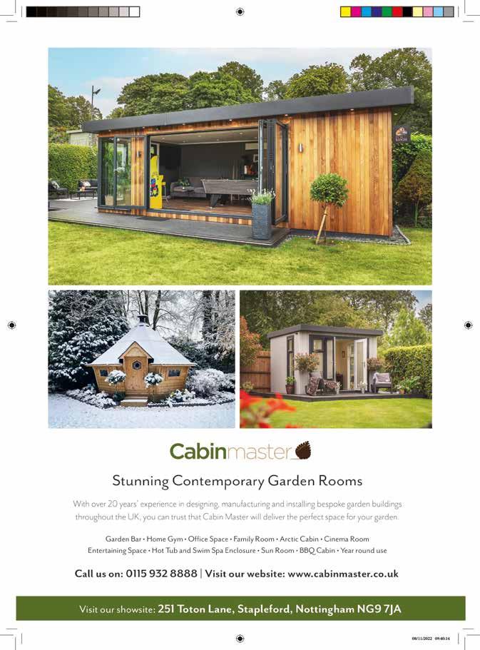 Gardener’s Calendar Roses aren’t the only plants to get blackspot. If you have ivy or other climbers which need pruning, trim them now before birds start nesting in them. Top Tip: GreenhousesRus VISIT OUR WEBSITE: WWW.GREENHOUSESRUS.CO.UK YOUR LOCAL GREENHOUSE SPECIALIST SUPPLIER OF GREENHOUSES & ACCESSORIES. SUPPLIER OF ALL MAIN BRANDS ON THE MARKET. INSTALLATION SERVICE AVAILABLE. 01623 443331 OPEN TO TRADE & PUBLIC ALUMINIUM WINDOWS • DOORS • BI-FOLD DOORS • TIMBER WINDOWS COMPOSITE DOORS • PVC-U WINDOWS/DOORS • SASH WINDOWS • FASCIAS SOFFITS • GUTTERING • LANTERN ROOFS SILICONE SEALANTS UNDERGROUND GLASS UNITS SUPPLYING BUILDING PLASTICS TO THE TRADE & PUBLIC BI-FOLD DOORS LANTERN ROOFS