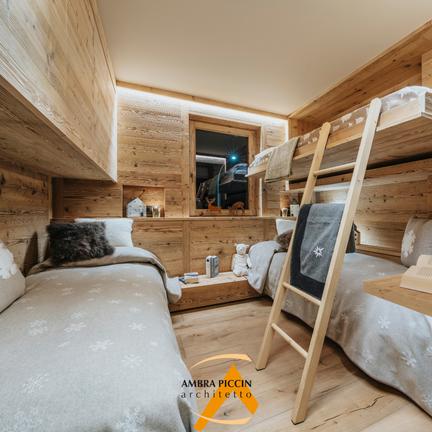 Le pareti interne che delimitavano gli antichi locali sono state in parte sostituite da vetrate insonorizzate che permettono il fluire della luce; anzi, che le permettono di raggiungere ogni angolo, donando alle stanze la luminosità frizzante e limpida dell’esterno. Mentre il colore del mondo montano, vivace e sfumato, è fatto tracimare all’interno e si distende nei toni morbidi e lisci del legno di abete vecchio, spazzolato e trattato con tinte e cere naturali che citano quelli del sottobosco.