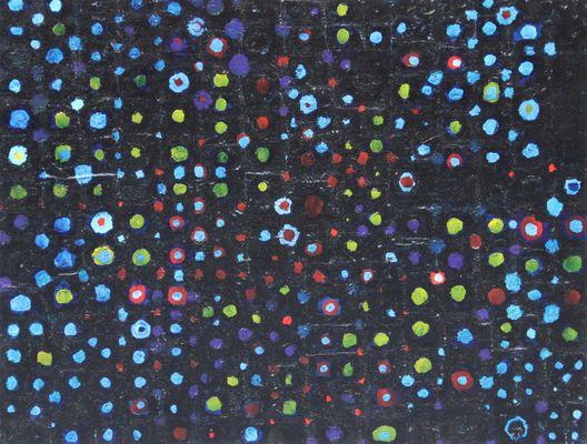 acrilici su rilievo plastico applicato su tavola, cm 40x40