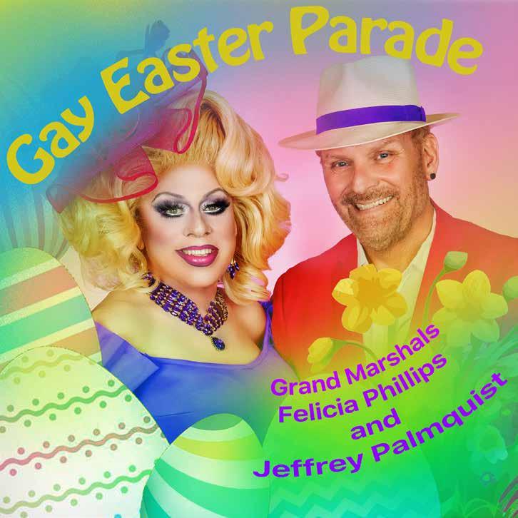 Jeffrey Palmquist and Felicia Phillips have been named as Grand Marshals for the 2026 Gay Easter Parade. Both long time French Quarter residents and celebrities, Palmquist and Phillips have strong ties to the queer community, having both worked in gay bars, both serving as royalty in Gay Carnival, both serving as Southern Decadence Grand Marshals, and both contributing to numerous charitable fundraisers.