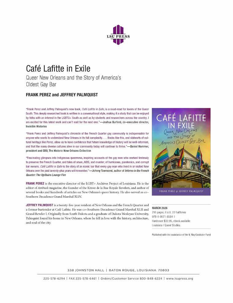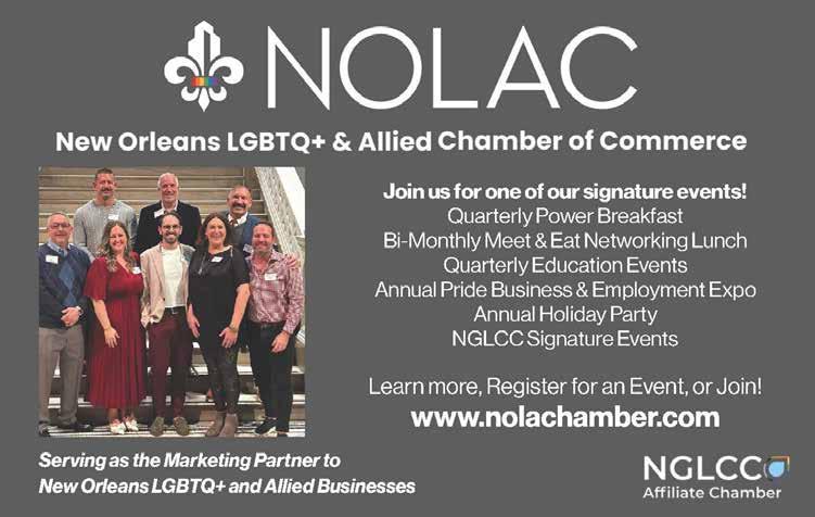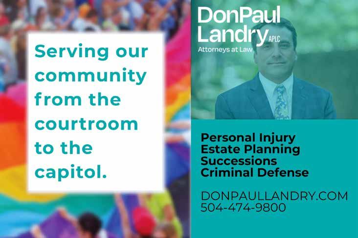 The regular session of the Louisiana Legislature convened on March 9. Louisiana Trans Advocates, an advocacy group, is tracking a number of “bad” bills, not the least of which is HB 578, a redundant anti trans sex definition bill. The group has also identified a number of “good” bills, including HB 293, which provides employment discrimination protections to LGBT+ people. Visit https:// www.latransadvocates.org/lege tracker to follow the progress of these and other bills.