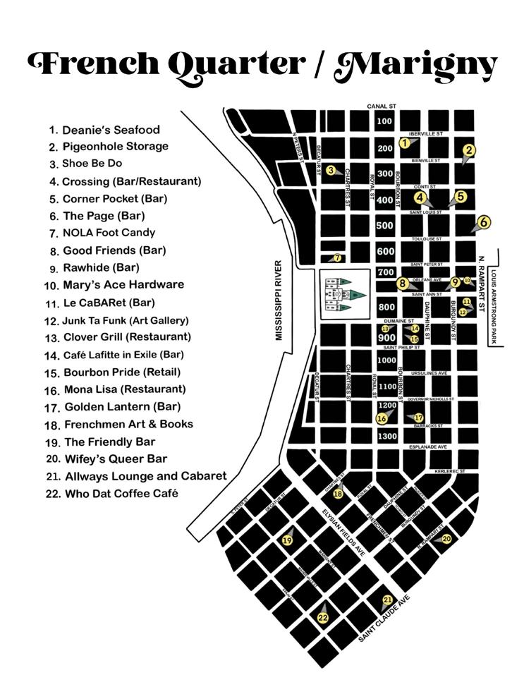 Exhibit Space. The new space will feature an exhibit on New Orleans’ rich LGBT+ history and include a timeline, informational panels, and photographs. The new exhibit space is located at 311 Burgundy Street in the French Quarter. The Grand Opening will kick off at 3:00 p.m. with a reception at 318 N. Rampart St. (The Mardi Gras Museum of Costumes and Culture). At 3:30 p.m., the group will second line around the block to the new exhibit space. The space will be free and open to the public and offer complimentary queer history walking tours on the weekends.