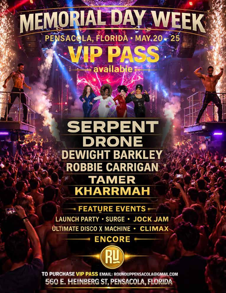 The Roundup Review: The Roundup; 560 E Heinberg St, Pensacola, FL; 5:30 p.m. No cover. Great drag show every Sunday. Zingo!; The Corner Pocket; 940 St. Louis St.; 6 p.m. Zingo! with the boy’s pullin’ the balls. Can you say, O 69? Come play to win fabulous prizes and bar tabs (free to play). Corner Pocket Emcee Felicia Phillips and former Southern Decadence Grand Marshal hosts.