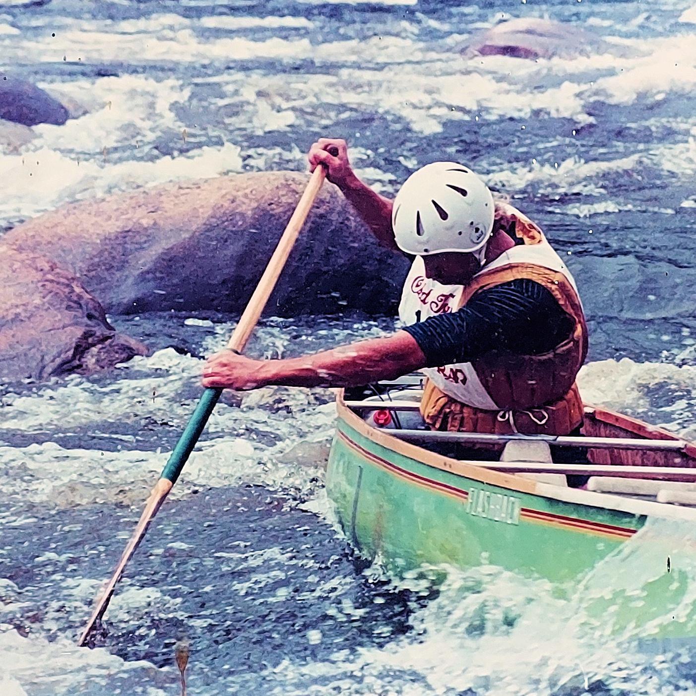 Haroldpaddlingthe AdirondacksinanSRT, oneofmanycanoeshe designed.