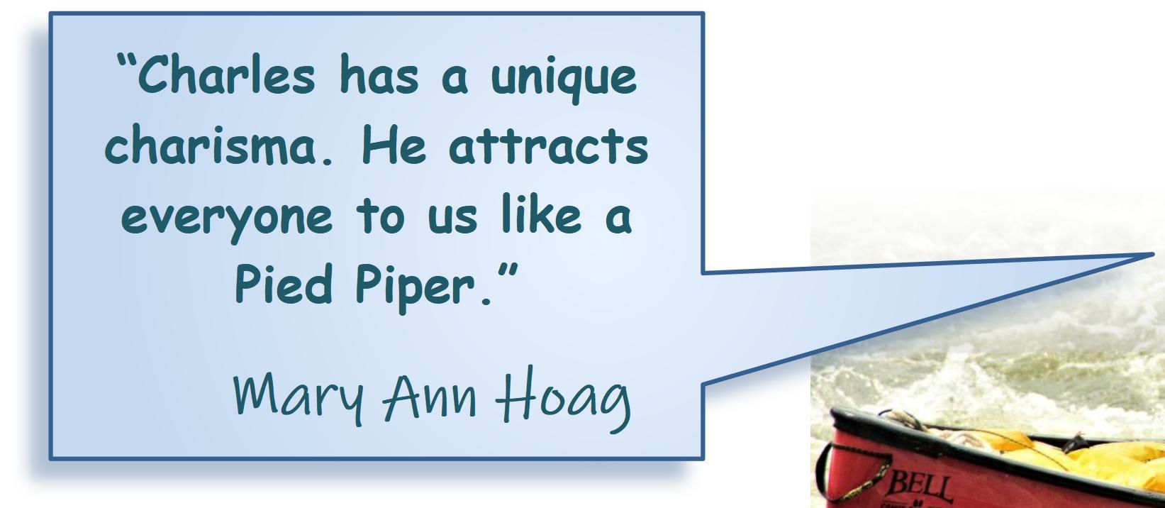 Charles’enthusiasticinfluence,infact, couldnotbecontainedjustamongour ownAMCpaddlingcommitteeand chapter.