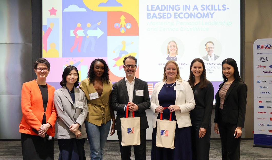 The AMCHAM Human Capital and Young Professionals Committees jointly hosted two transformative workshops by senior lecturers from the Asian Institute of Hospitality Management (AIHM). Chris Meyland’s insightful workshop explored aspects of service and intentional behaviors to excel in customer service, while Samantha Marion’s interactive workshop helped build self-awareness, trust, and clarity to support effective leadership. After the breakout workshops, participants gathered for a group reflection where they exchanged their thoughts and ideas.
