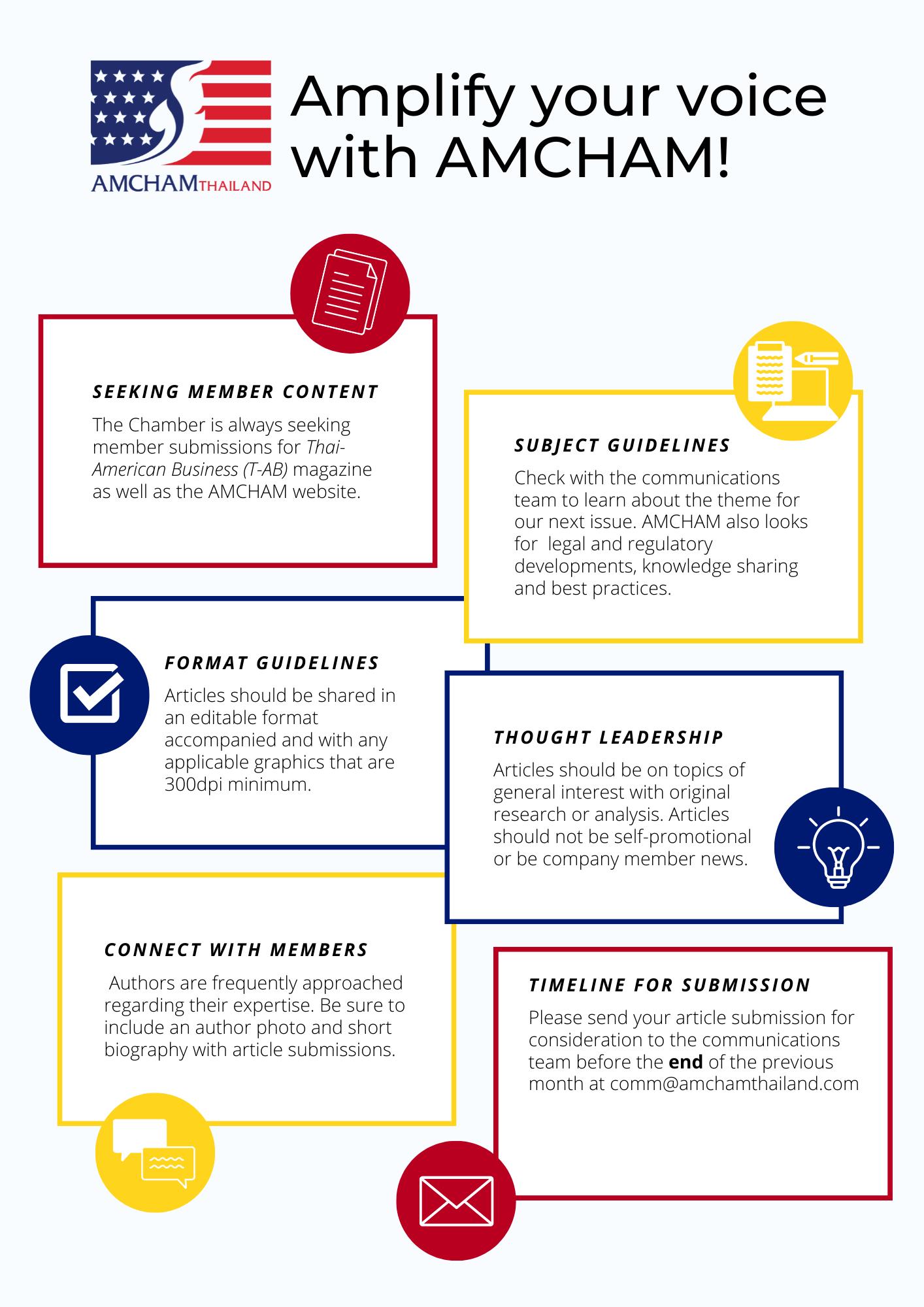 101 True Digital Park, Griffin Building, Level 12A, Unit No.12A-06, Sukhumvit Road, Bangchak, Phra Khanong, Bangkok 10260 Tel: +66 (0)2 119 3350 www.amchamthailand.com