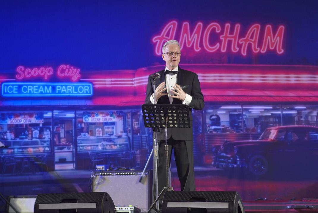 ”While tonight is about fun, the Gala is also our largest annual fundraiser for the AMCHAM Thailand Foundation Scholarship Program. We will be supporting 140 students this year with both university and vocational school studies,” said AMCHAM President Chatit Huayhongtong of Chevron. He added, “Tonight, we also celebrate 70 incredible years of AMCHAM… seven decades of impact and community. From its founding to today, AMCHAM has grown into a dynamic force driving innovation, opportunity, and shared economic prosperity between the United States and Thailand.”