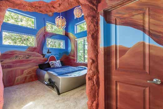 The open-concept floor plan allows for stunning views from both the interior and exterior. Throughout the home are elements specifically, that reflect the homeowners and their love for blue and Italian inspired design. Each room offers its own unique experience for guests. The home features custom designed fireplaces, light fixtures, and walls which perfectly complement the gorgeous surrounding scenery SkyRidge offers.