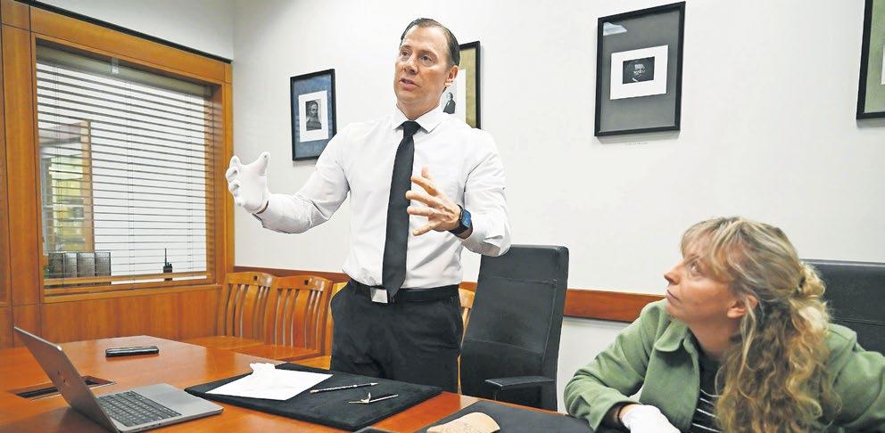 BYU professor Lincoln Blumell and Annie Spach, a research assistant, show pottery and other items with writings on them that they have translated in Provo on Tuesday, Oct. 29, 2025. Blumell says he has discovered another person named in the Bible.
