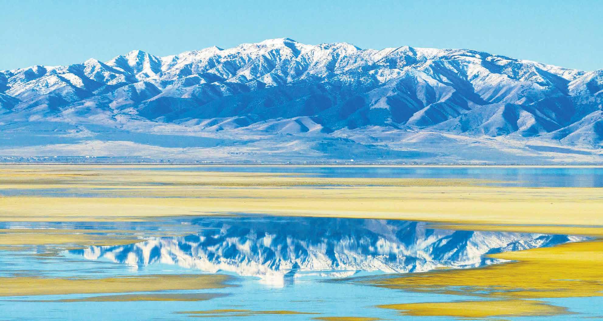 The Stansbury Mountains are reflected in a patch of water along the Great Salt Lake on Tuesday, Jan. 6, 2026.