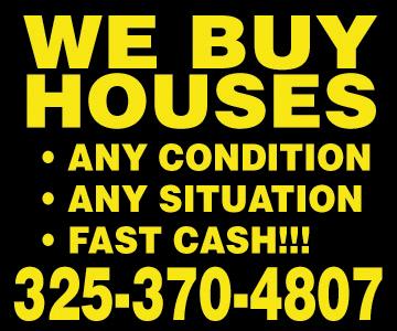 2 BEDROOM, 1 bath house w/garage. $775 month. 325268-4013 FOR RENT: 4 bedrooms, 1 ½ baths, central heat, appliances. $900 rent, $450 deposit. No pets. 325-280-2534