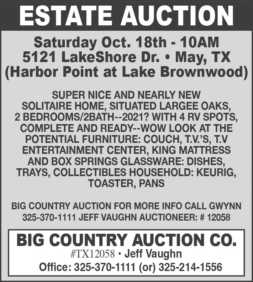 The auction will end at 11:00 am or Thereafter October 25, 2025. Property will be sold to the highest bidder. If the bidder does not pay in allotted time, the property will go to the 2nd highest bidder. Payment will be accepted only at the facility on 818 S Clack St Abilene, TX preceding the end of the on-line auction. Cleanup & removal deposit is required. Seller reserves the right to withdraw property from the sale.
