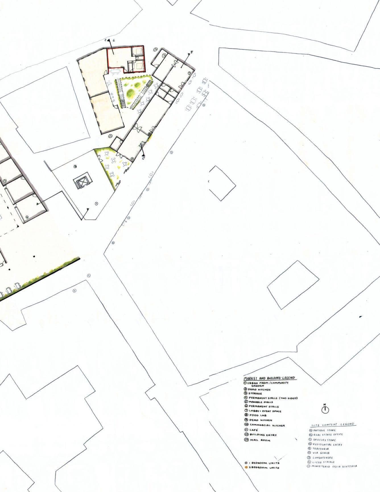 how does a new build blend into an ancient streetscape? it’s impossible to compete with the ancient architecture in rome, so instead of competing it we chose to honor it. through extensive sketching studies, we aimed to understand the elements that define the character of the roman streetscape, and incorporate these into our market and our housing design. digital model and site plan created in collaboration with david,