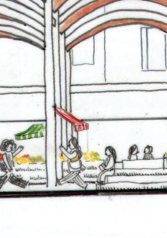 the market hall was inspired by its surroundings, an abstract take on the terracotta rooflines that surround the piazza. a mix of flexible and fixed stands, the market is a gathering place for all the seek shelter and eat good food. its a connecting point between the river and the historic city center