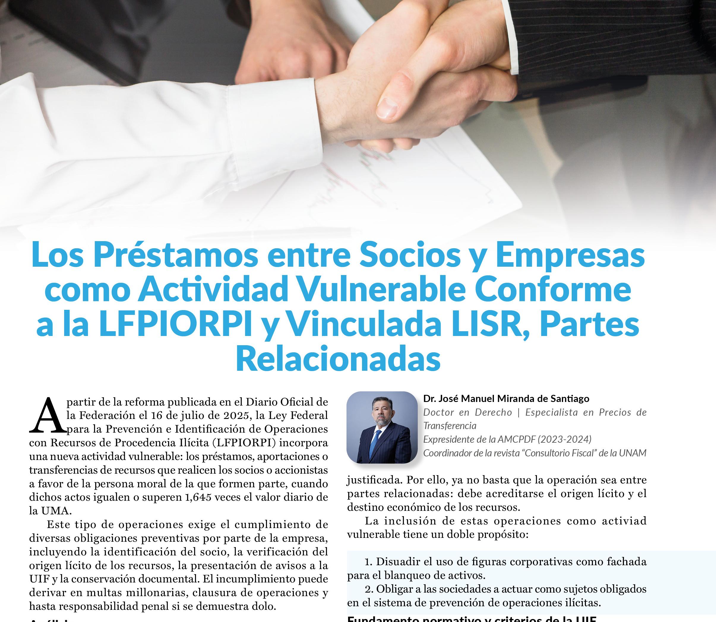 En relación con el artículo relativo a préstamos a socios, publicado en el marco de la LFPIORPI y la LISR, se realizan las siguientes precisiones:
