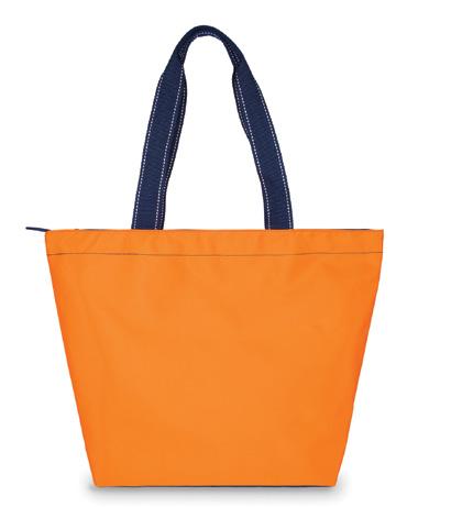 Canvas. Snap closure. Exterior front slip pocket. Interior zip pocket. 11” handle drop. 17”L x 8”W x 14”H.
