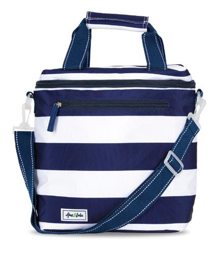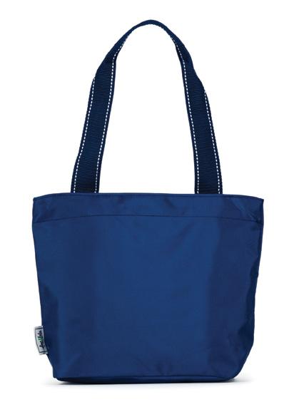 Nylon. Zip closure. Interior hanging zip pocket. Striped poly liner. 11” handle drop. 20”L x 8”W x 13”H.