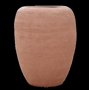 Élaborés à partir d’une terre rouge riche en minéraux, les jarres et pots striés Argile incarnent l’esthétique brute et authentique en finition « Terre Rouge ». Les stries sculptées au tour, réalisées sans moule, requièrent un geste long et précis : l’artisan fait monter la terre, puis creuse le relief à même la matière.