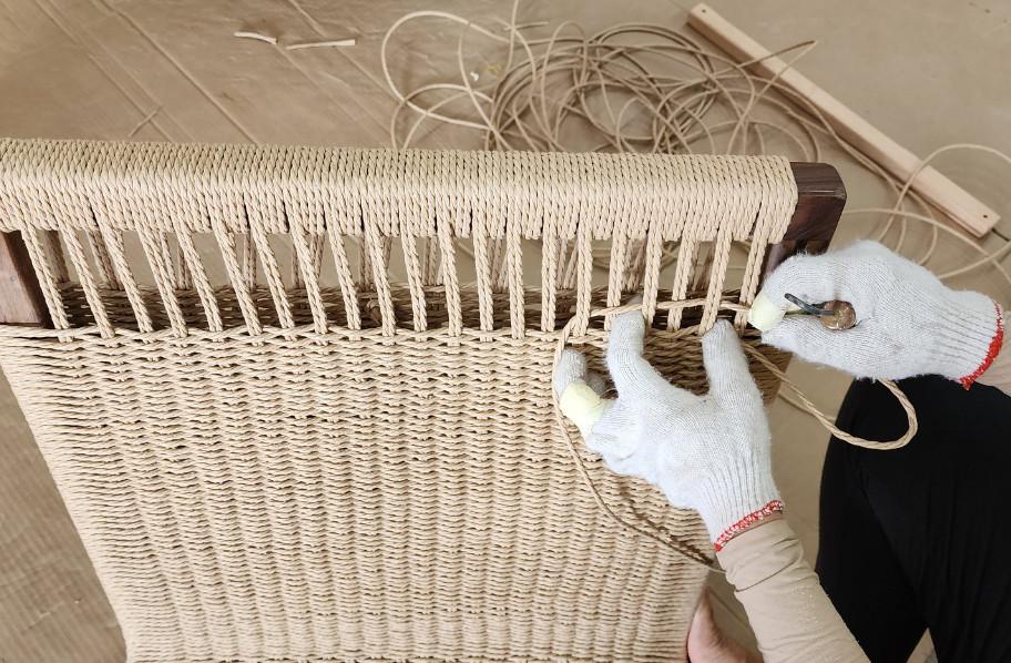 MATIÈRE NOYER, CORDE DANOISE ET TISSU ORIGINE VIETNAM MATERIAL WALNUT, PAPER ROPE AND FABRIC · ORIGIN VIETNAM PERMANENT
