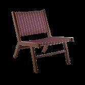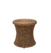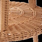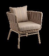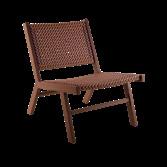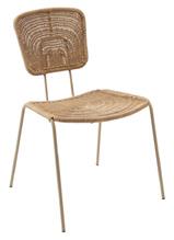Dans un atelier artisanal de la province du Guangdong en Chine, une région montagneuse qui borde la mer, les artisans ont choisi des fibres synthétiques flexibles qui imitent parfaitement l'osier. Ils les ont tressées de façon serrée sur une structure en acier fabriquée dans une forge artisanale voisine, recouverte de peinture outdoor couleur naturelle. Les vis sont en acier inoxydable.