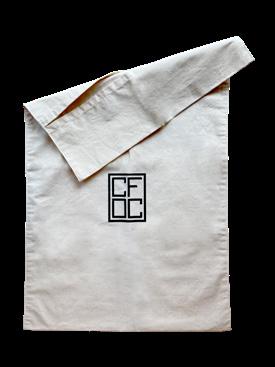 Depuis 2019, la CFOC a choisi de proposer des pochons réutilisables en toile de coton brut non traitée. Résistants, élégants et de différentes tailles, ils peuvent se plier facilement et pourront être réutilisés car ils s’adaptent à de multiples usages.