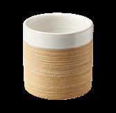 Élaborés à partir d’une terre rouge riche en minéraux, les jarres et pots striés Argile incarnent l’esthétique brute et authentique en finition « Terre Rouge ». Les stries sculptées au tour, réalisées sans moule, requièrent un geste long et précis : l’artisan fait monter la terre, puis creuse le relief à même la matière.