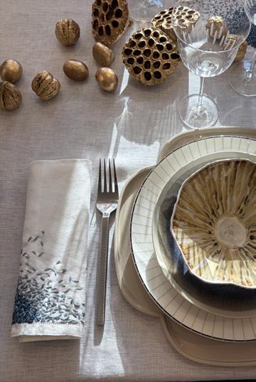 Nous préconisons d'emballer l'art de la table dans du papier de soie.