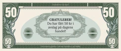 Vi har fylt en koffert med sedler som gir avslag på varer i den butikken kofferten besøker. Vi har også noen få eksklusive gullbilletter blant sedlene. Er du heldig og trekker gullbilletten er du med i trekningen av gavekort/produkt.