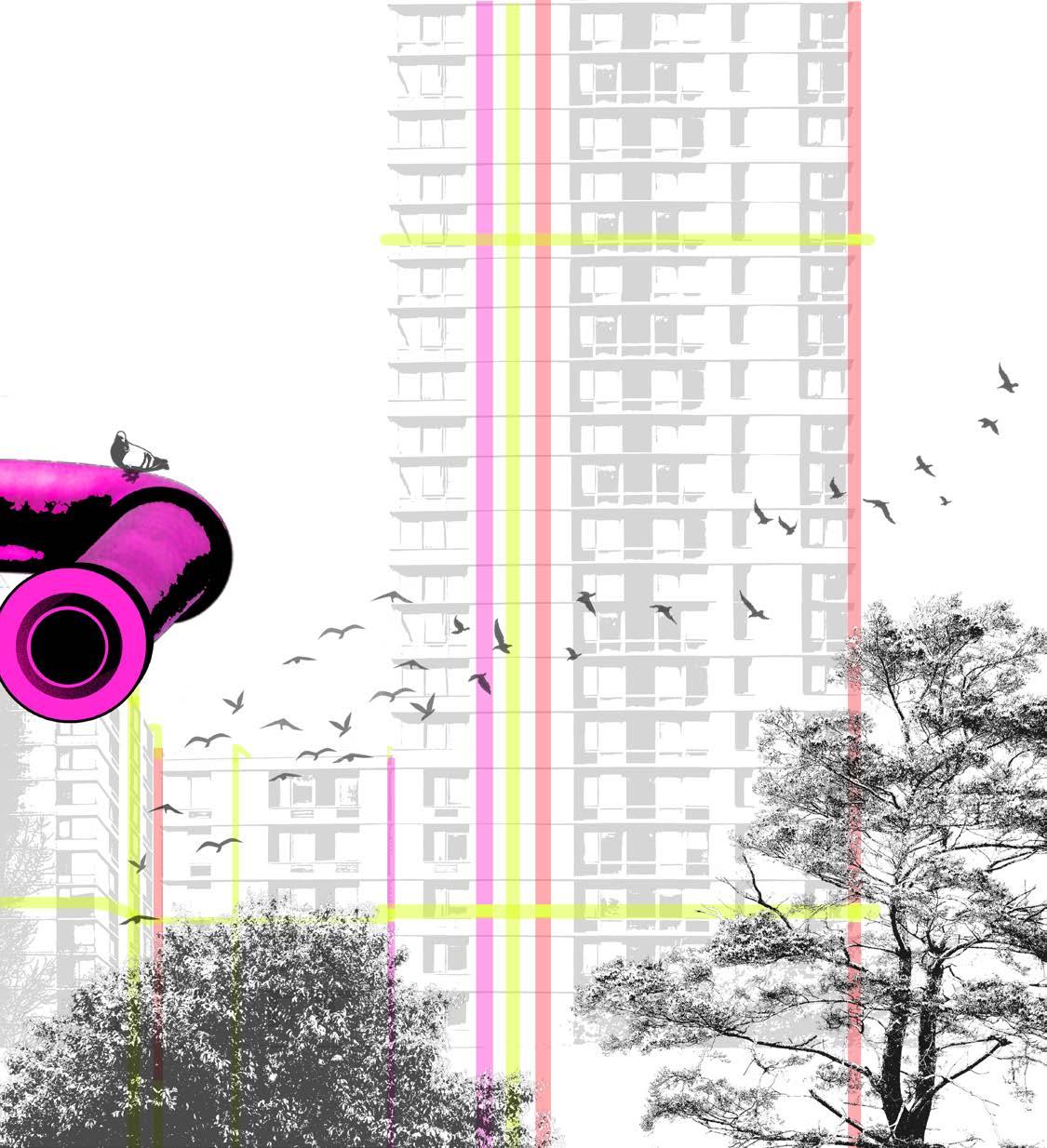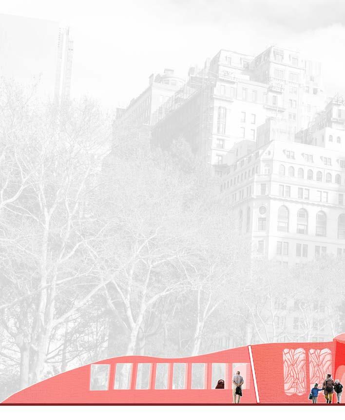 The brightly colored tubes give a new identity to Roosevelt Island. Representing our desire to hide uncomfortable forms of inflastructure, these tubes add a playful nature to the very serious problem of waste.