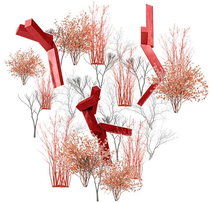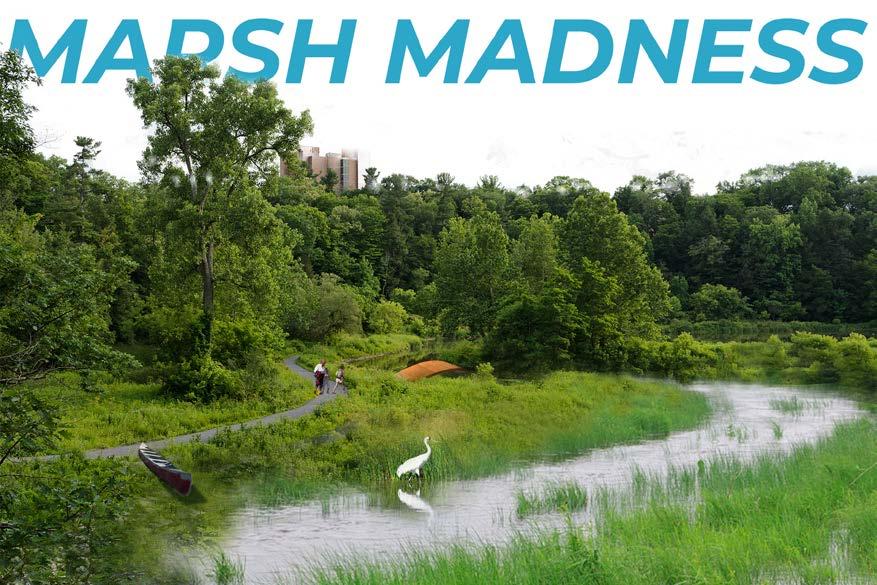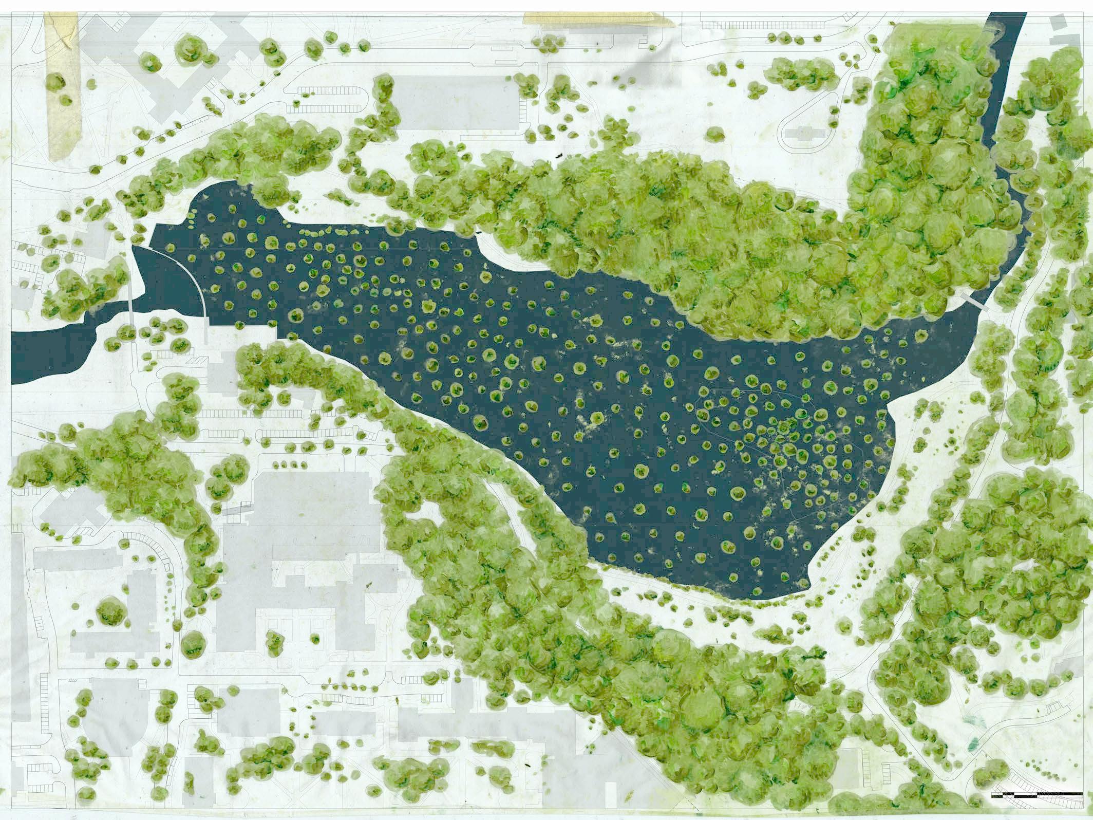 The island itself has been broken up into smaller structures made of of a single tree, functionally serving the same purpose of the main island, yet speeding up the return of the marsh. In that time of flux, visitors can enjoy canoeing through a forest, until the marsh is fully formed.