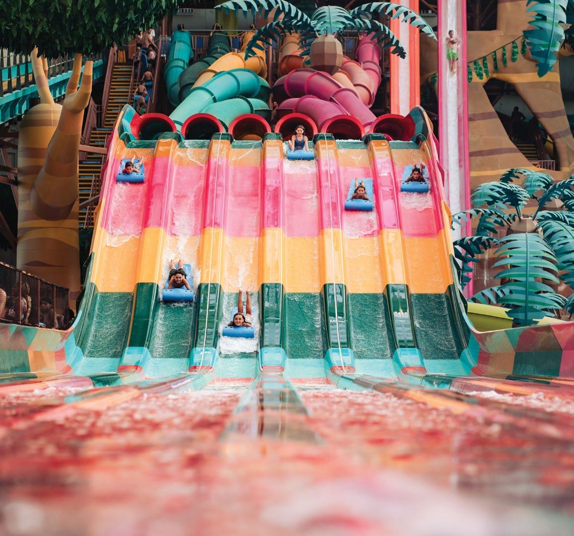 Trade your board for a tube and choose from 19 insane water park rides, including the country's longest indoor lazy river, the world's largest tipping bucket, the world's tallest indoor speed slide, and the world's longest hydromagnetic rocket coaster.