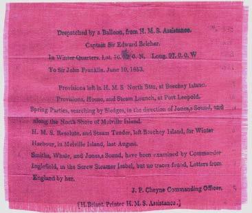 Figure 1: Message on red silk dropped from a balloon during the search for the Franklin Expedition in the Arctic during June 1853.