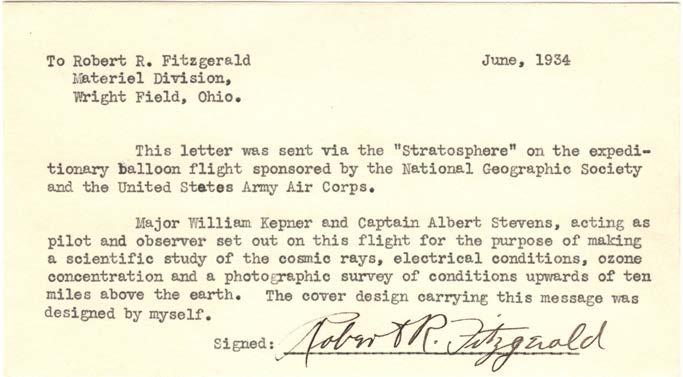 about $21,000 today) to try to get the Army involved in sponsorship of stratosphere balloon experimentation.