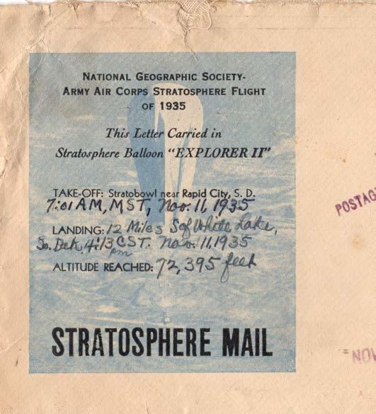 In this first part of a two-part series, author Ken Stach explores the postal history of the Explorer I stratospheric balloon flight conducted by the National Geographic Society and U.S. Army Air Corps in 1934. In the next issue, Stach will conclude by looking at the Explorer II flight of 1935.