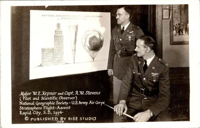 “The Secretary of War, George H. Dern, through the Army Air Corps, has assigned three expert balloon officers to conduct the flight: Maj. William E. Kepner, pilot; Capt. Albert W. Stevens, observer; and Lieut. Orvil A. Anderson, alternate. The Air Corps has also made available the facilities of its admirably equipped machine shops and laboratories at Wright Field, Dayton, Ohio.” 8