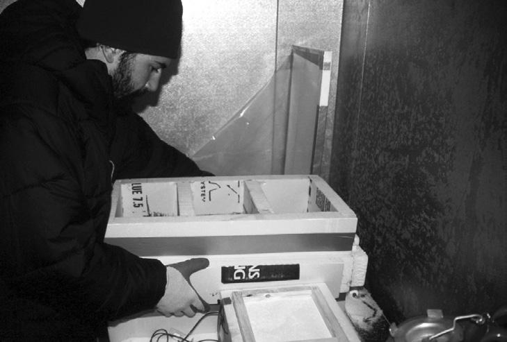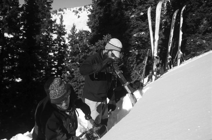A3 Members Through the Years—Classic Corner Archives: (from top to bottom) 1 Ned Bair ready to throw a shot while working at Mammoth Mountain Ski Area. 2 Emily Johnston, Grand Targhee, 1999-ish. 3 Spencer Logan and Greg Johnson forecasting together in Logan, Utah, around 2000. 4 Mike “Coop” Cooperstein doing his MS degree fieldwork looking at surface hoar and near-surface facets at the Yellowstone Club back in the early 2000s. 5 Rod Newcomb working an AAI course in the San Juans, 1984. 6 Kelly Elder trying to avoid an office avalanche of paper, 2004. 7 Daniel “Howie” Howlett and Doug Christenson performing cornice work on Mt. Baldy in 1983. 8 Ethan Greene doing some preliminary work for his PhD at the cold lab at Montana State. ! THANK YOU TO KARL BIRKELAND, MIKE FRIEDMAN, EMILY JOHNSTON, AND JONATHAN MORGAN FOR THESE CLASSIC CORNER SUBMISSIONS.