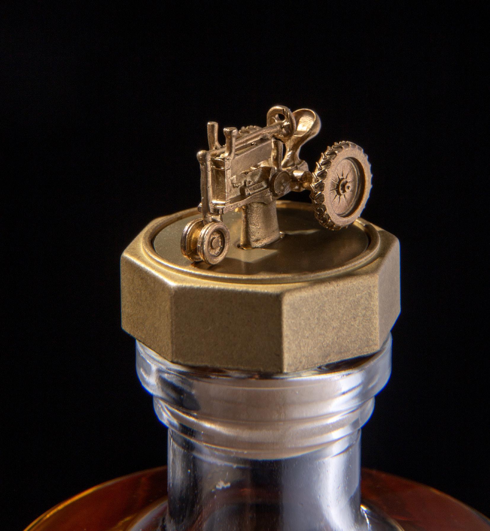 Frey uses this bolt-shaped closure on all his products but will change up the design for limited runs. For example, the company’s special edition Harvester series features a tractor on the top.